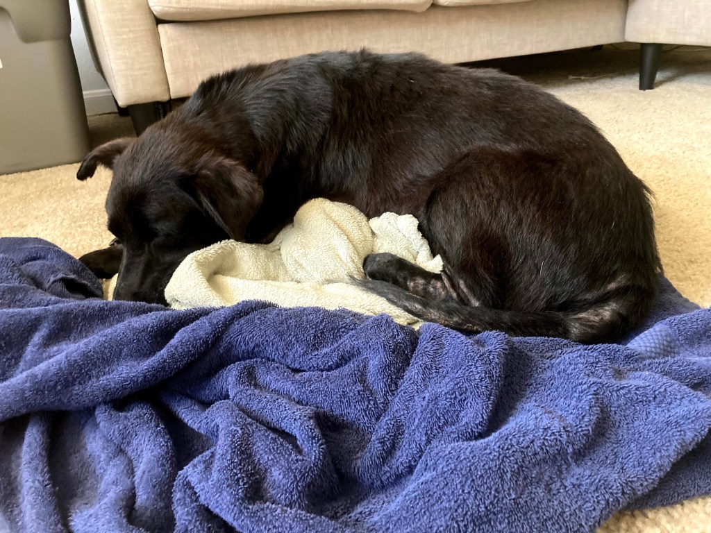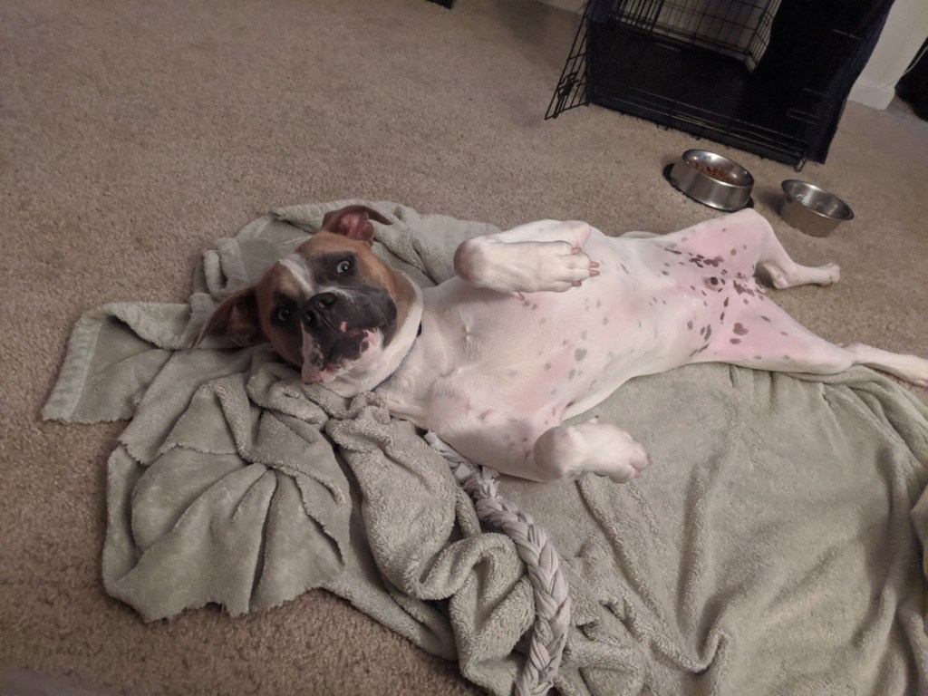 Laney came to us with battle scars all over, it was obvious she had been through a lot. The moment she stepped inside our home, she collapsed. She spent entire days sleeping, barely opening her eyes except to eat and go outside for relief. It took nearly a week for her to do much more than slowly walk down the stairs to do her business. The day she started wagging her tail and playing with some toys, I nearly cried. Laney taught me that it is okay to take a break and to come back to real life when you’re ready.