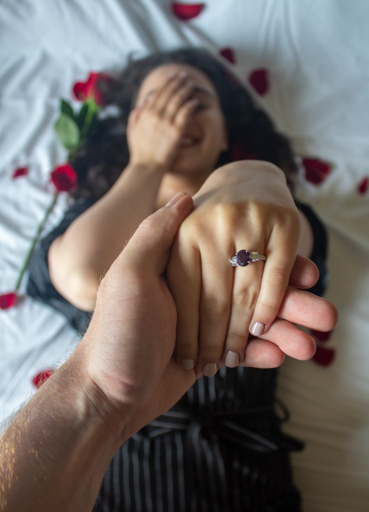 The next day, Jake bought roses and a bottle of wine. He showered the bed with rose petals where we drank wine, took photos, and let it all sink in—we were engaged! We visited our favorite winery to celebrate (and take more photos of course). We soaked up every moment of our first days engaged before announcing it to the whole world. It may not have been a conventional he-proposed-to-her moment, but it was us. And I wouldn’t change a thing.